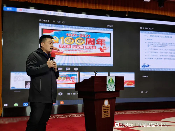 上圖為 保定市廣播電視報社黨支部書記劉賀田老師講《為什么選擇了共產(chǎn)黨》