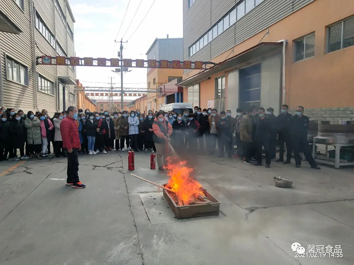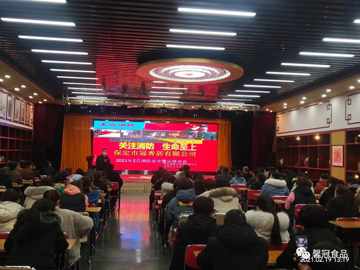 開工在即,為了增強(qiáng)員工消防安全意識,提高員工檢查、消除隱患的能力、撲滅初期火災(zāi)的能力以及火場逃生和引導(dǎo)疏散的能力,保定馨冠食品有限公司、保定市冠香居食品有限公司于2021年2月19日在公司文化館會議大廳召開“2021年消防安全培訓(xùn)大會”。
